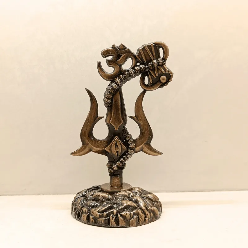 Elevate the spiritual ambiance of your home or temple with the Om Shivay Trishul Copper by Jantram. Crafted using high-quality copper and traditional motifs, this elegant wall hanging features the sacred Trishul (trident) and Om Shivay inscription, symbolizing Lord Shiva’s divine presence.